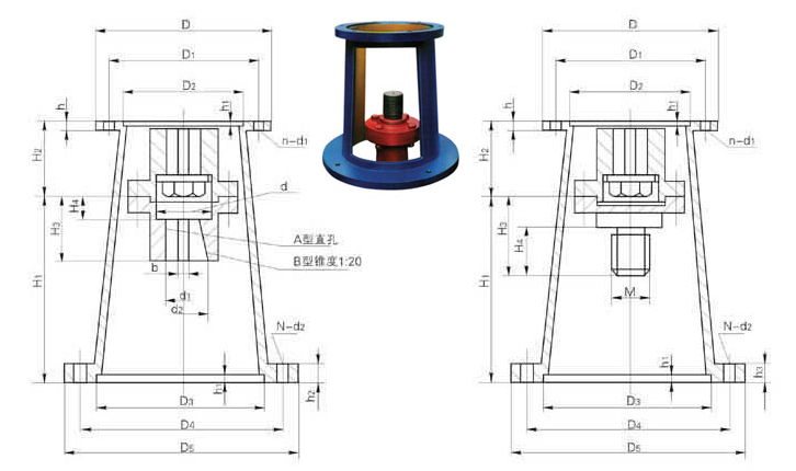 | JAⅡ3 | B3 | 340 | 310 | 270 | 6 | 22 | 6-13.5 | 320 | 400 | 460 | 22 | 4-20 | 328 | 112 | 120 | 80 | M60×4 | 1000 |