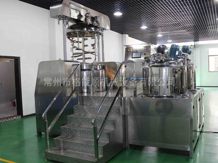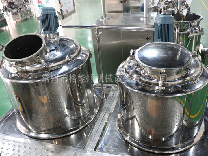 1、乳化鍋過(guò)為自動(dòng)升降式,水鍋、油鍋中的物料通過(guò)輸送管道可在真空狀態(tài)下直接吸入乳化鍋。